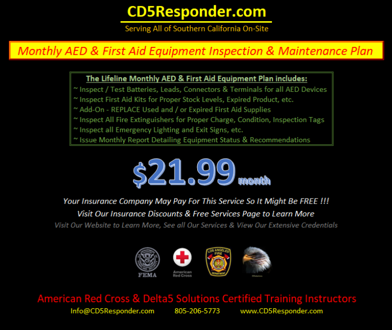 We take the work & worry out of it for you with our Lifeline Monthly AED & First Aid Inspection & Maintenance Plan. Click